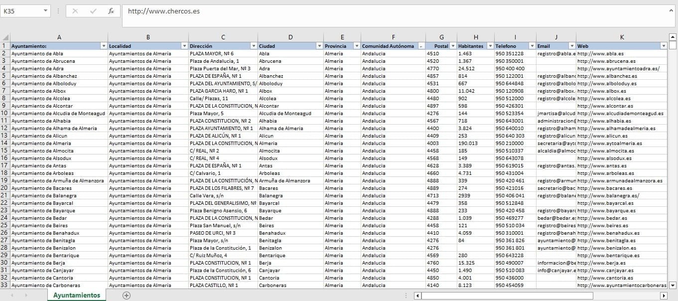 Comprar Base de datos 8091 Ayuntamientos de España